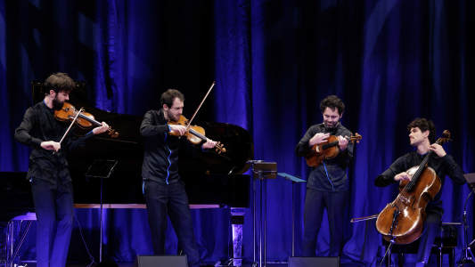 Das vision string quartet, das seit über zehn Jahren mit seinen pop- und jazzaffinen Programmen und energetischen Performances die gediegene Streichquartett-Szene aufmischt, versteht sich auch als Band. 2020 haben die vier Musiker, die in der aktuellen Saison Artist in Residence der Tonhalle sind, ihr höchst erfolgreiches Album »Spectrum« aufgenommen, auf dem 13 selbst komponierte und arrangierte Songs versammelt sind. Sie sind inspiriert von Folk, Pop, Rock, Latin, Funk und Minimal, teilweise aus Improvisationen entstanden, suchen aber auch immer wieder den Bezug zur klassischen Tradition. In seinen Konzerten spielt das Quartett auswendig, im Stehen und elektronisch verstärkt.